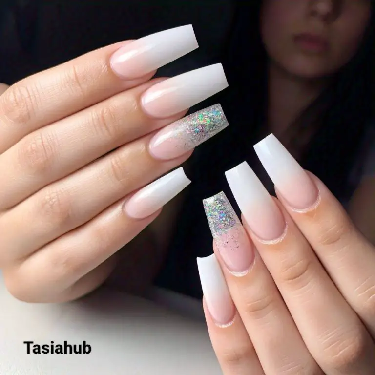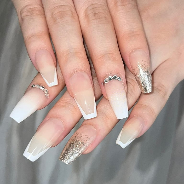 68 White Tip Coffin Nails With Glitter MYrasperk 5