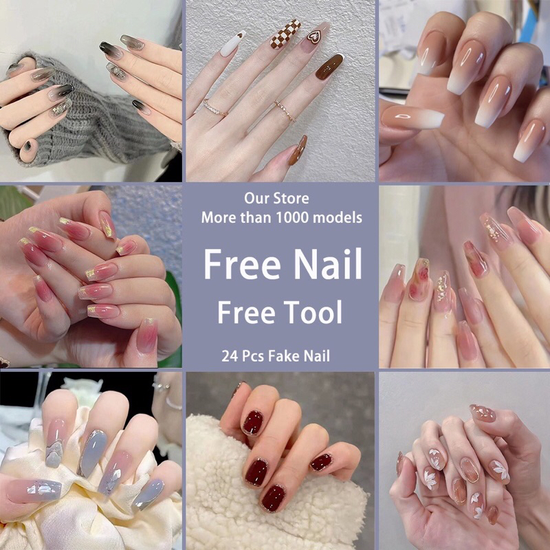 Jual Original Fake Nails Kuku Palsu 24 Pcs Nail Art 3D Tahan Air 1