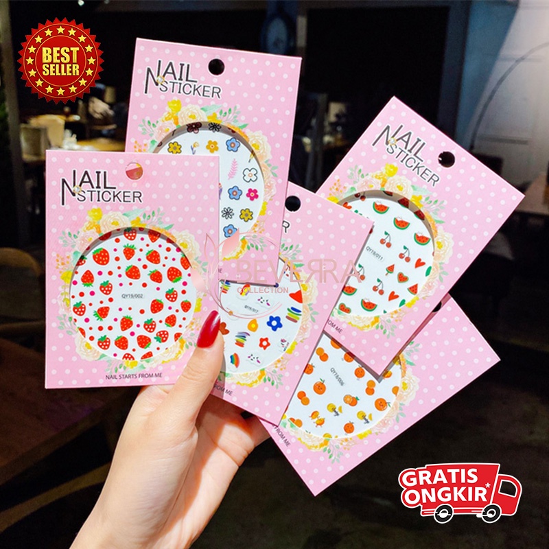 Jual Stiker Kuku Anak Perempuan Motif Bunga Buah Nail Art Kecil Tahan 12