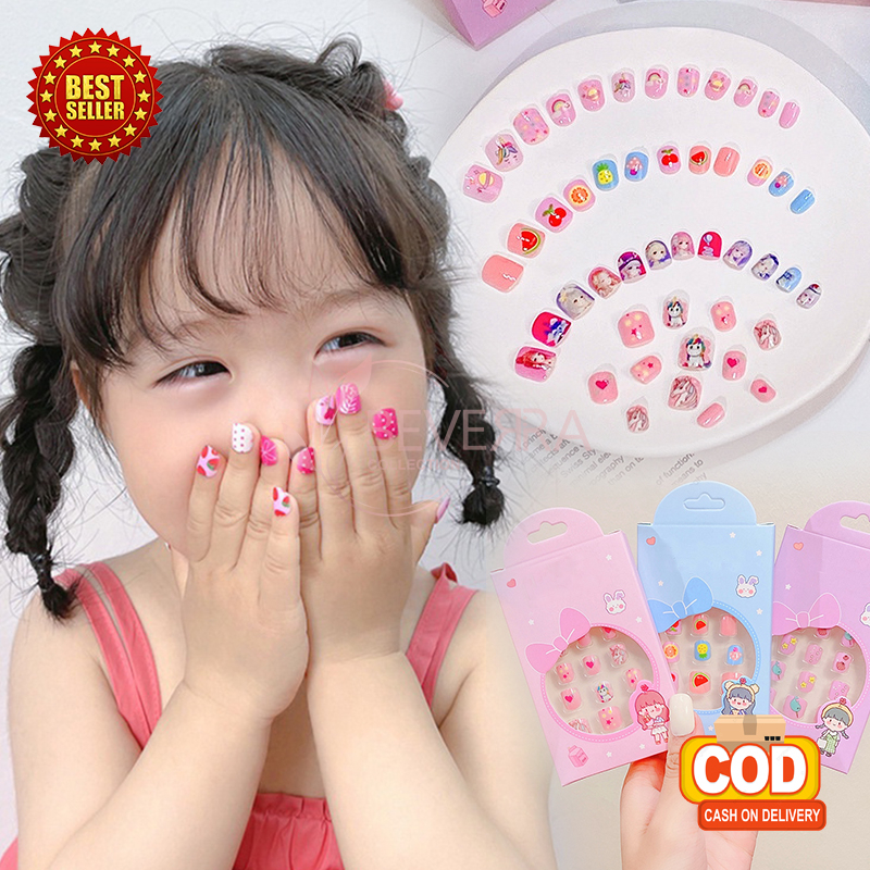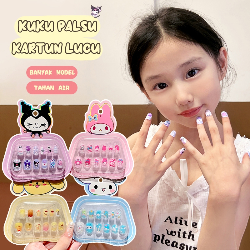 Jual Kuku Palsu Nail Art Anak Motif Kartun Lucu Set 12 Pcs Warna Warni 0