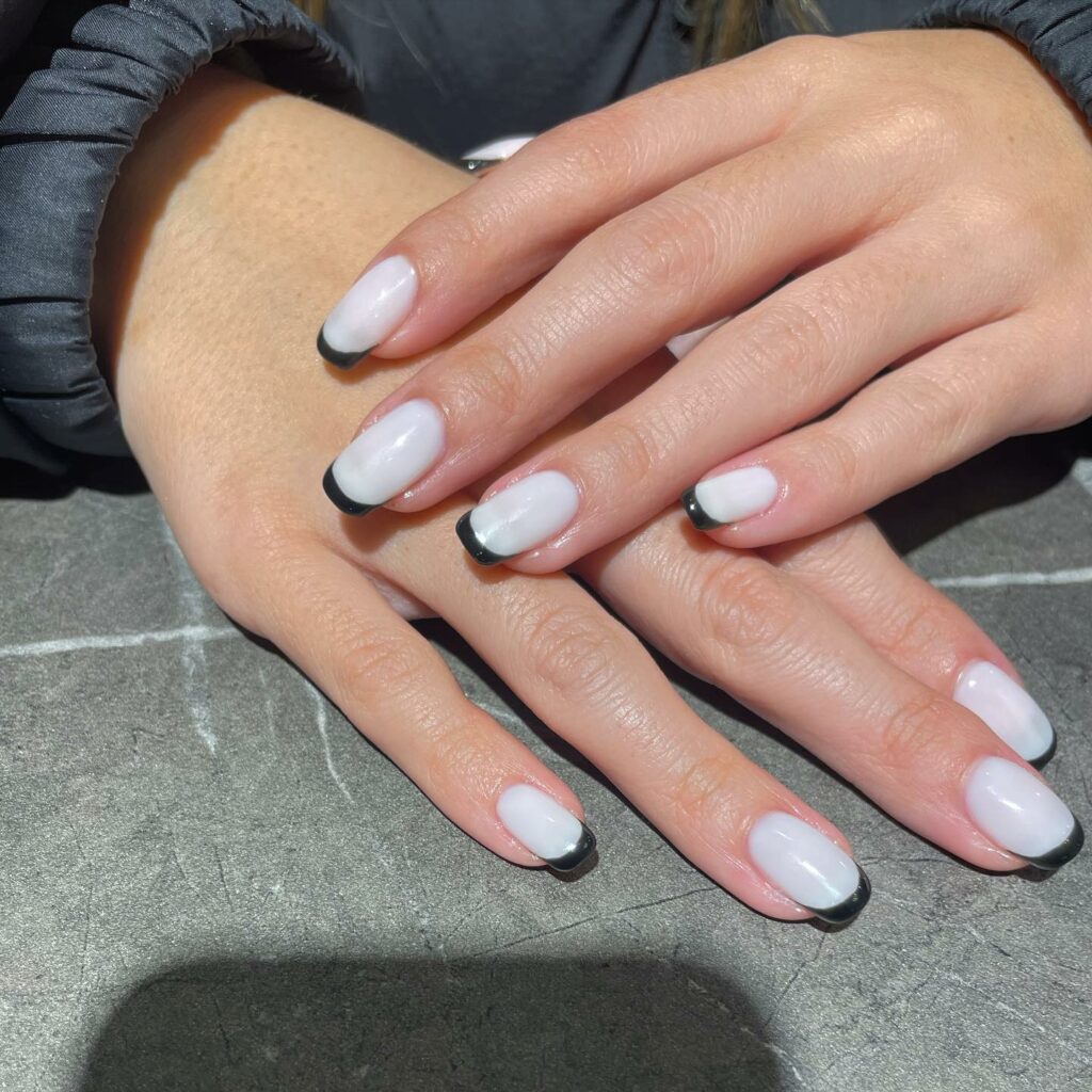 Minimal Black French tip Black nail tips White tip nails French tip 9
