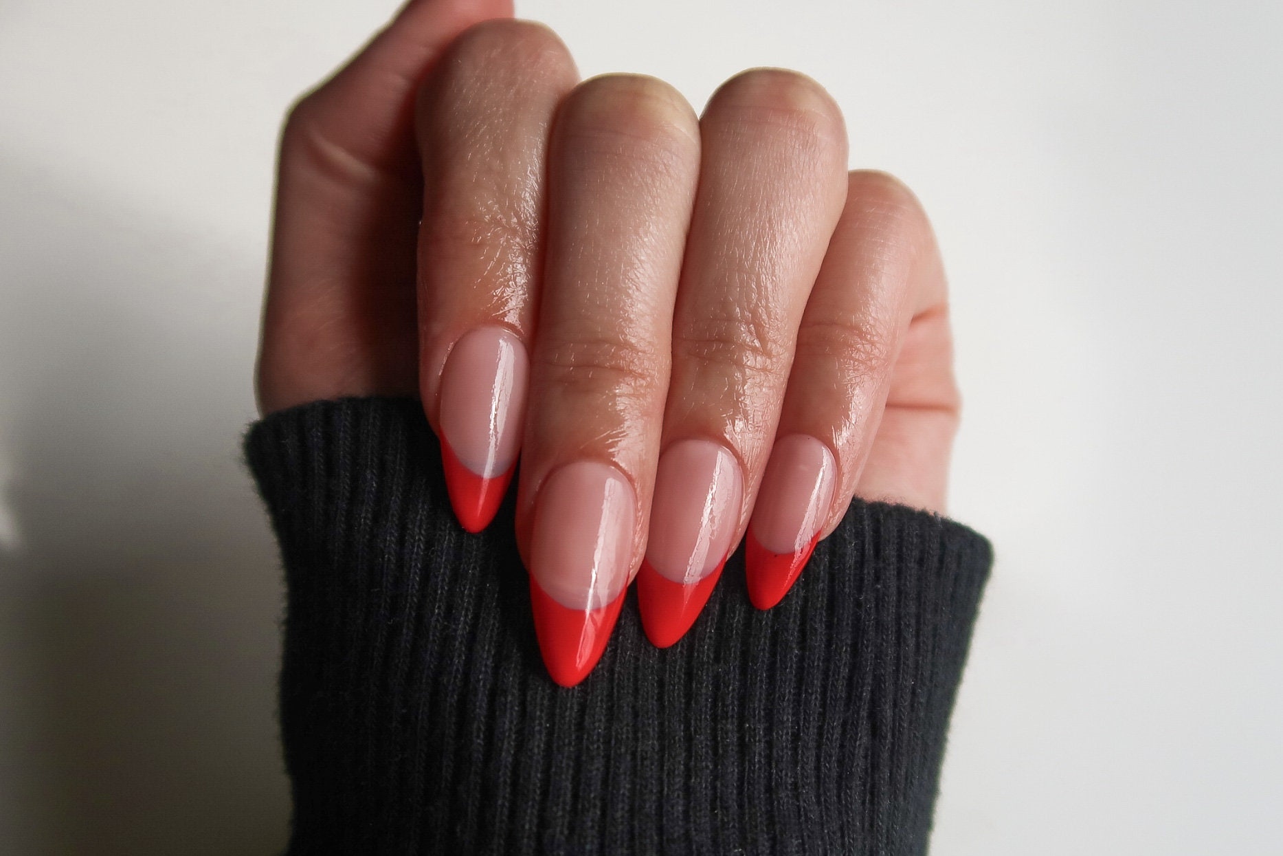 Cherry Red French Detail Nails Salon Quality Hand Painted Press on 5