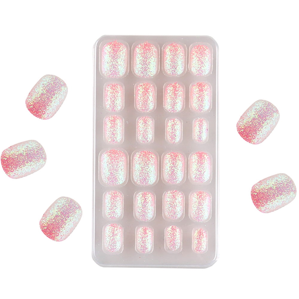 24 Pieces Kids Press on Nails Pre glue Children False Nails Stick on 1