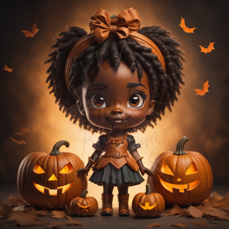 Fall Halloween Kids Black Girl Magic Melanin PNG Afro Fashion Girl 12
