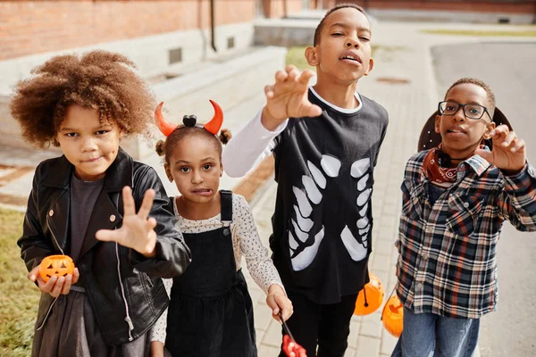 Premium Photo Group of excited africanamerican kids wearing halloween 3