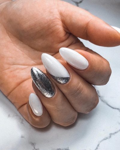 White n silver Wedding nails design Wedding nails Wedding manicure 13