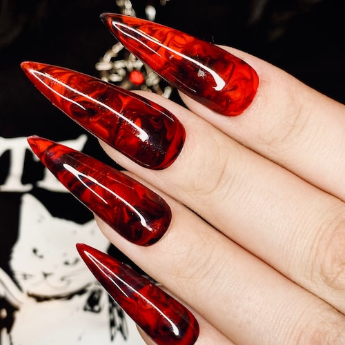 Blood Red and Black Nails Halloween Nails Gothic Nails Etsy 9