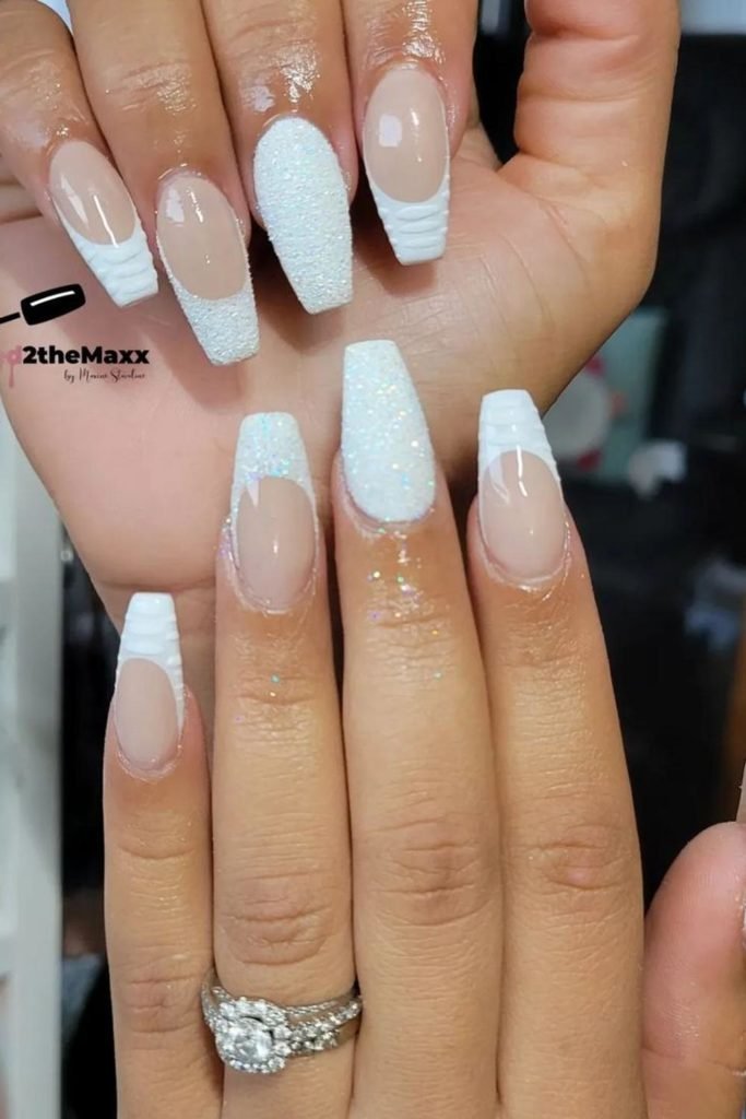 55 Stunning Ideas for White Glitter Nails 5