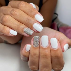2 White with silver glitter accents Silver nails Silver sparkly 10