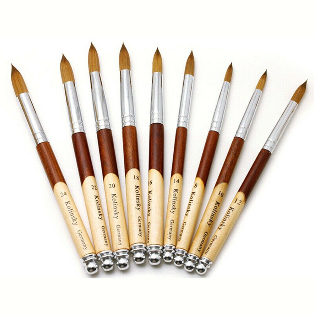 Acrylic Nail Brush Wood Handle Oval Crimped Shaped Grandado 8