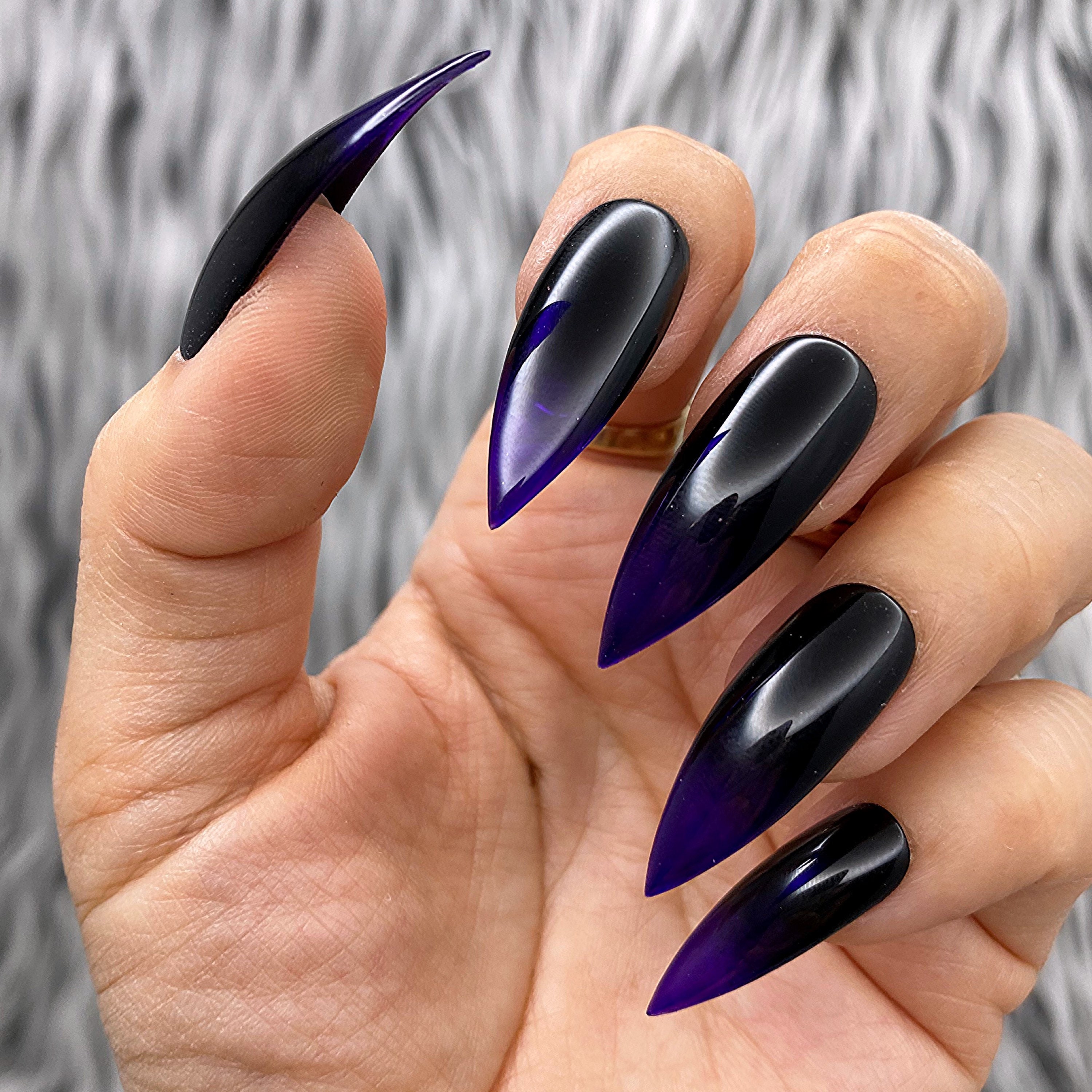 Witch Hunt Black Purple Ombre Glossy Halloween Press on Nails Etsy 2