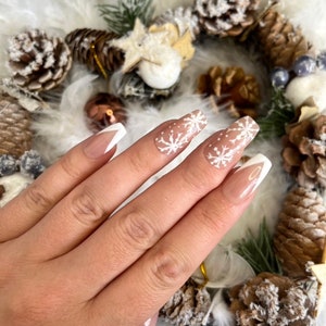 White French Christmas Nails Christmas Press on Nails French Tip 0