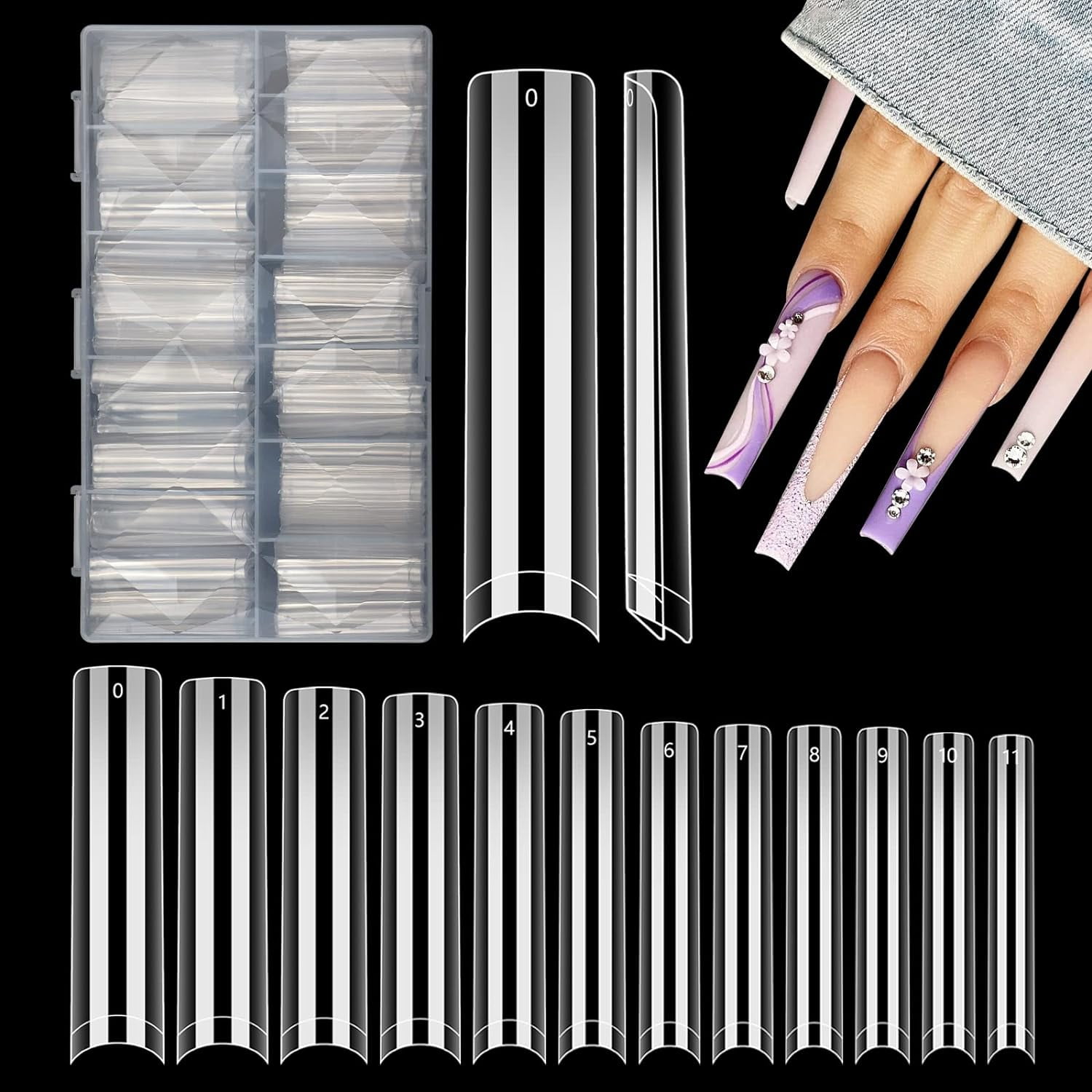 Ponamfo 504PCS 3XL Tapered Square Nail Tips Clear Acrylic Extra Long 4