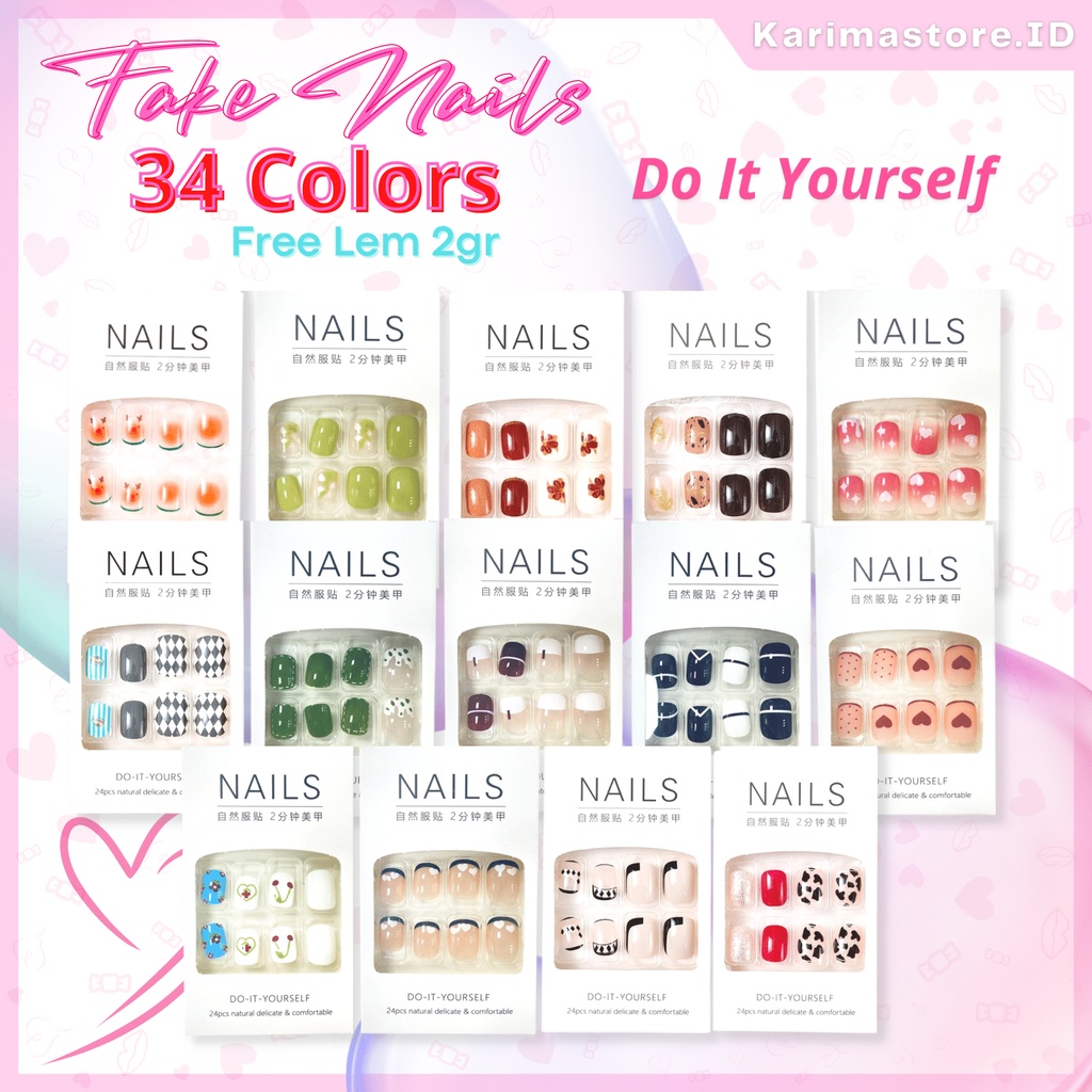 Jual Fake Nails 24pcs Kuku Palsu Kuku Palsu Murah Lem Kuku 9