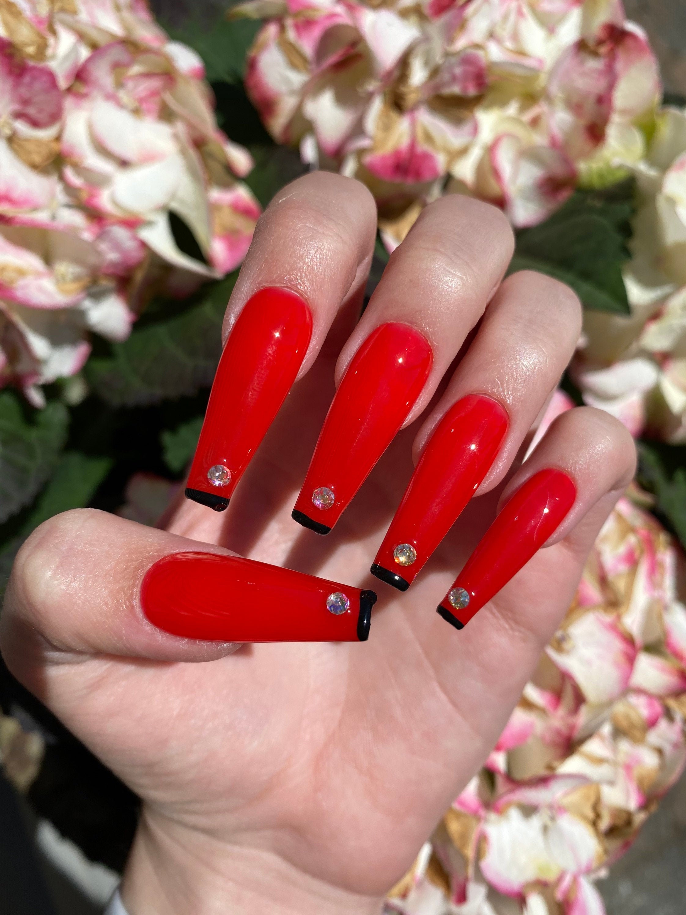 Red and black rhinestone nails right nails Rhinestone nails Nails 9
