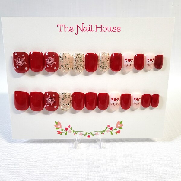 Miniature Christmas Press on Nails Custom Christmas Short Nails With 2