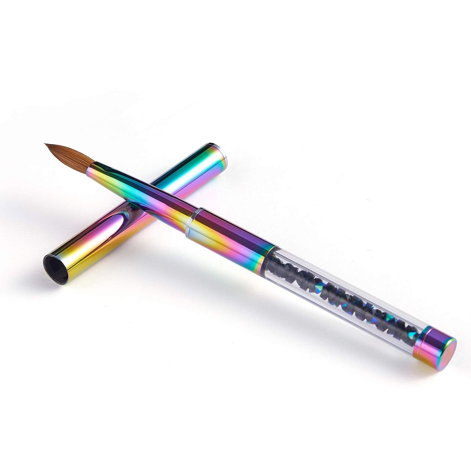 100 Kolinsky Acrylic Nail Brush Rainbow Crystal Handle Crimped Size 8