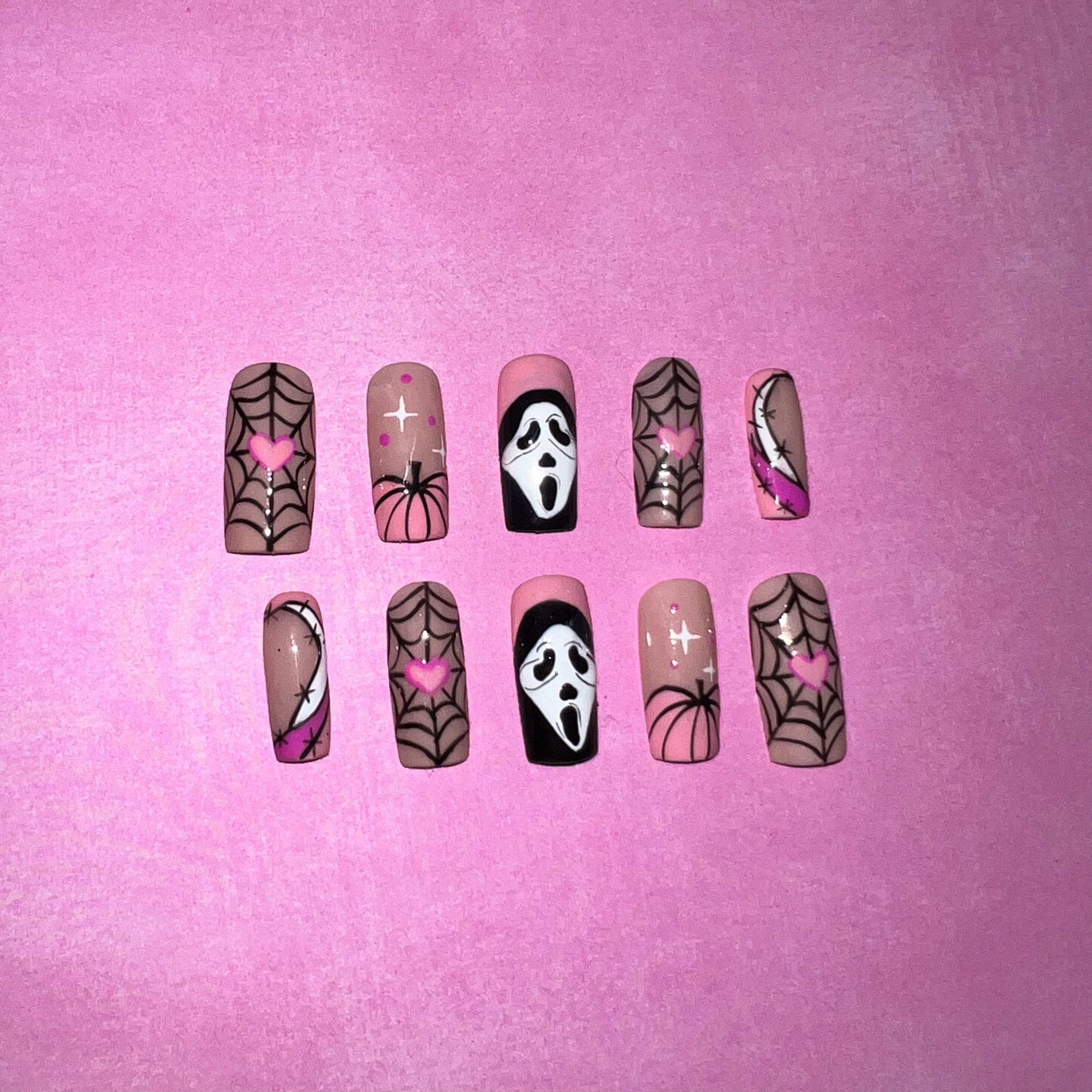 Scream Spiders Long Coffin Pink Halloween Press On Nails RainyRoses 13