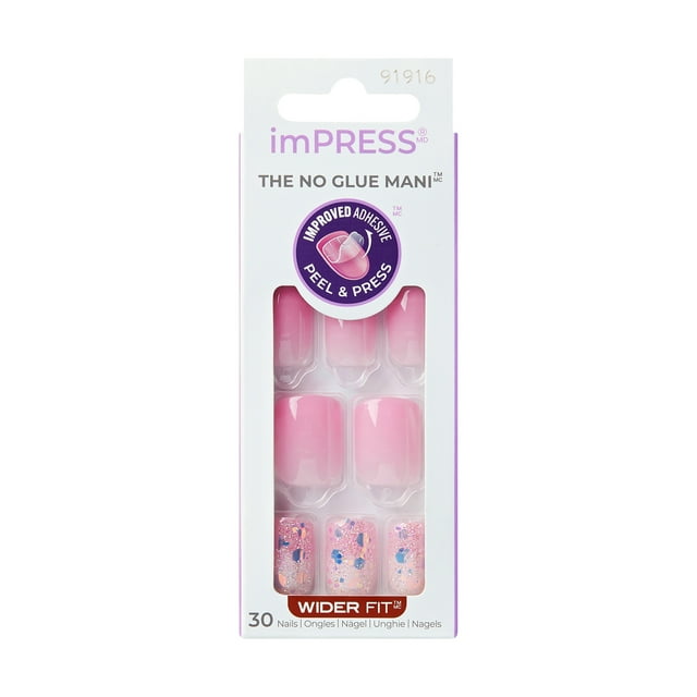 imPRESS Press On Nails No Glue Needed Pink Medium Length Wide 1