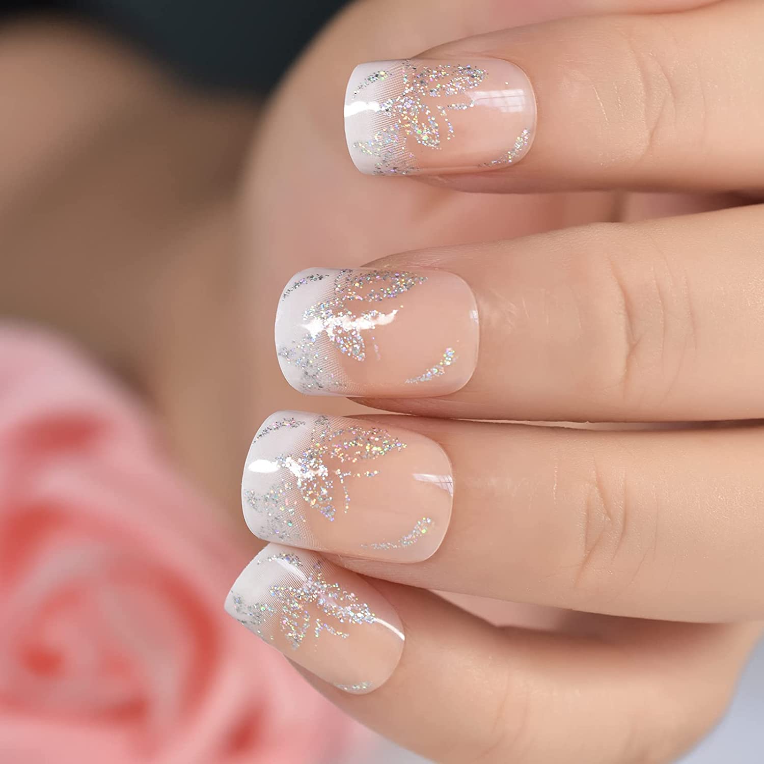 Glitter French Nails French Tip Acrylic Nails Short Acrylic Nails 3