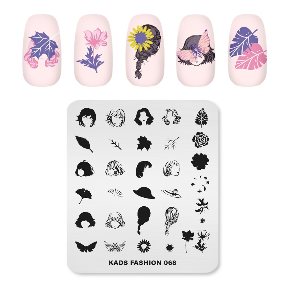 KADS Nail Art Stamp Plate Hairstyle Girl leaves Na Grandado 2