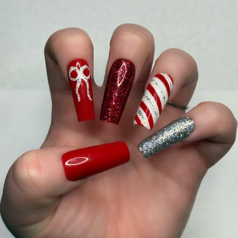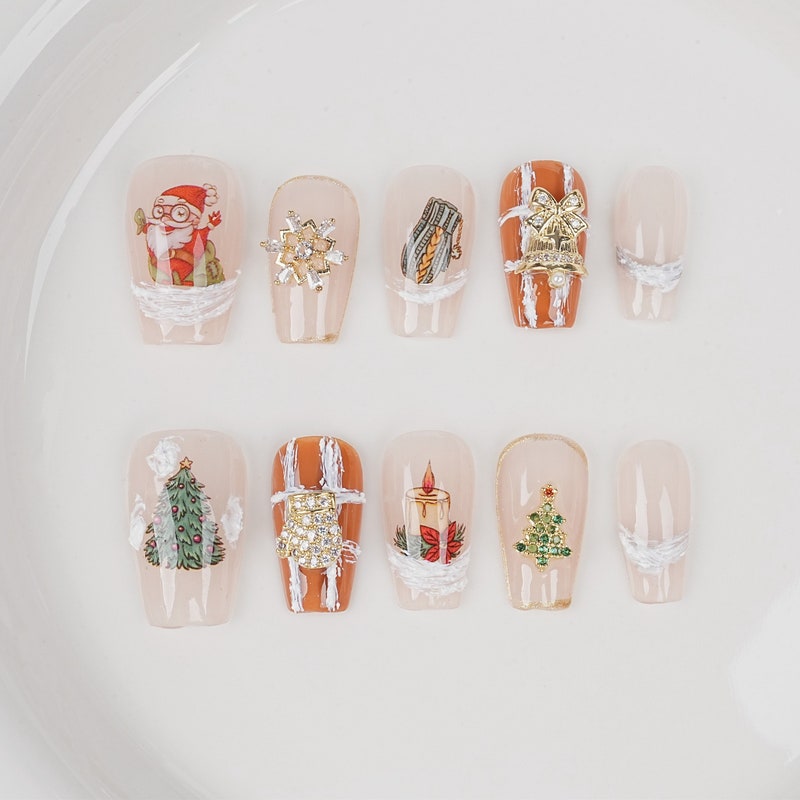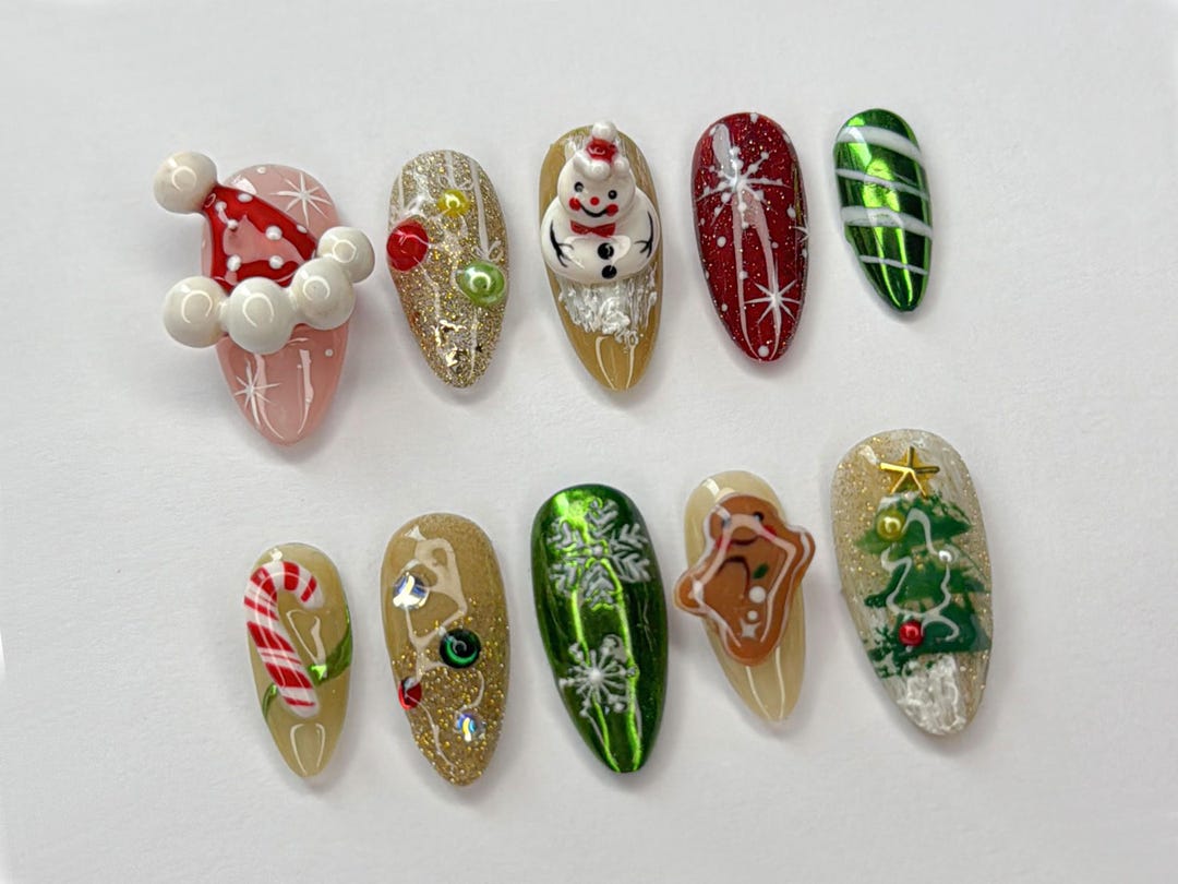 Christmas themed Press on Nails Glittery Holiday Nails With 3D 8
