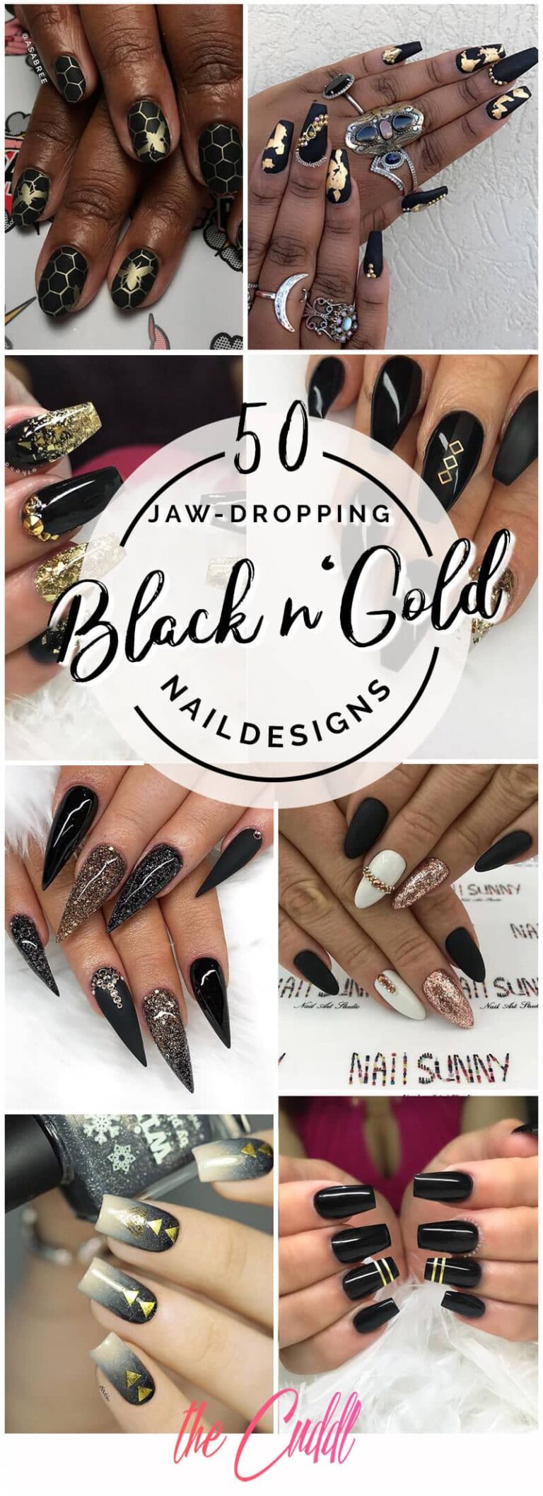 50 Beautiful Black and Gold Nail Designs That Will Make You Gasp in 2023 13