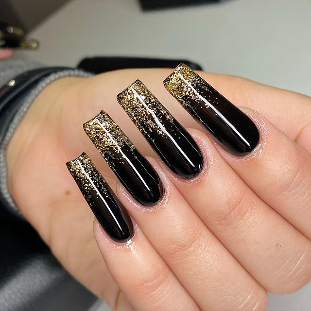 Black Nails With Gold Glitter Tips at Leo Rey blog 5