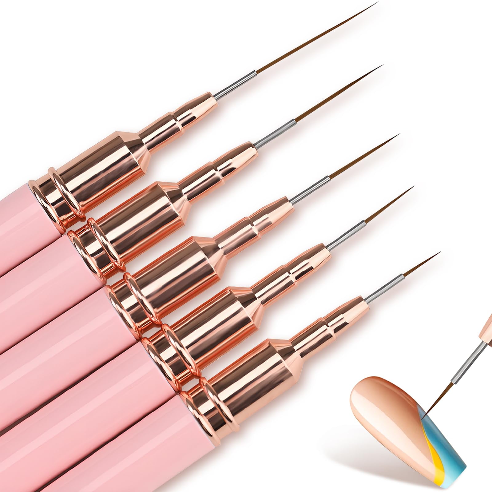 5 Pcs Pink Nail Art Liner Brushes Fine Drawing Sizes 4 8 12 20 25mm 0