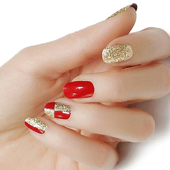 Holiday Glitter Red and Gold Color Wraps Nail Polish Strips Etsy 3