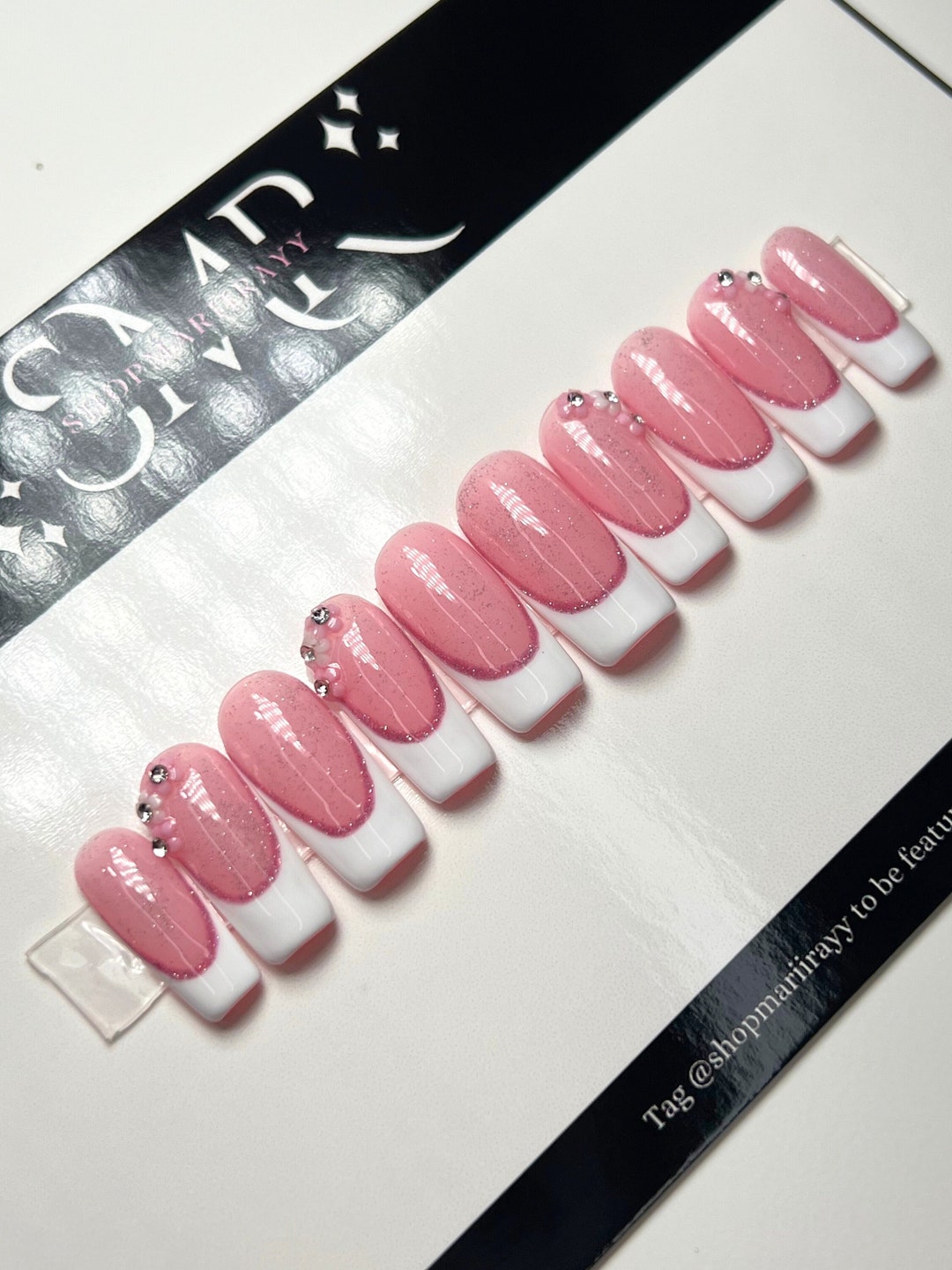 Pink Sparkle Nails Glitter French Tips French Tip Acrylic Nails 10