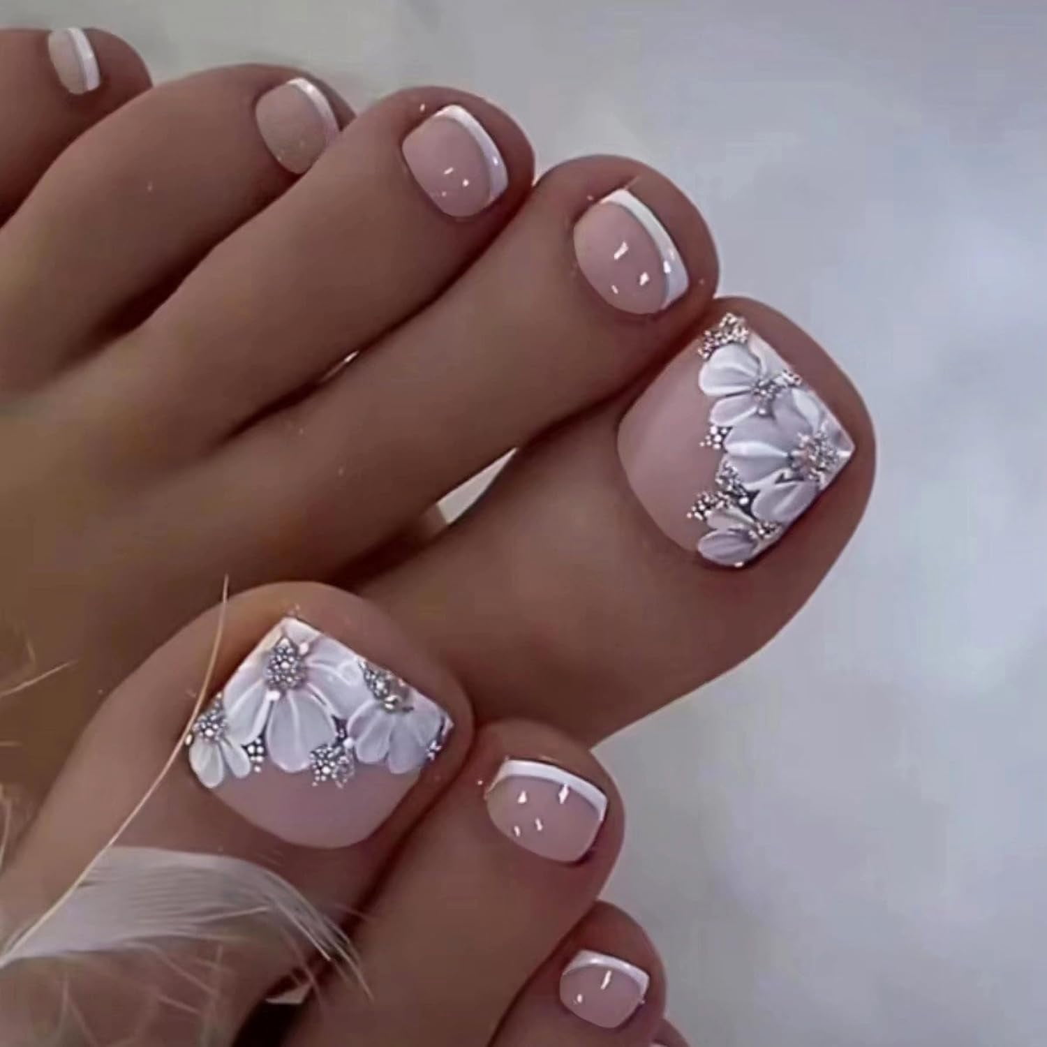 Toenails Press on Toenails Fake Toe Nails White French Tip Toe Nails 11