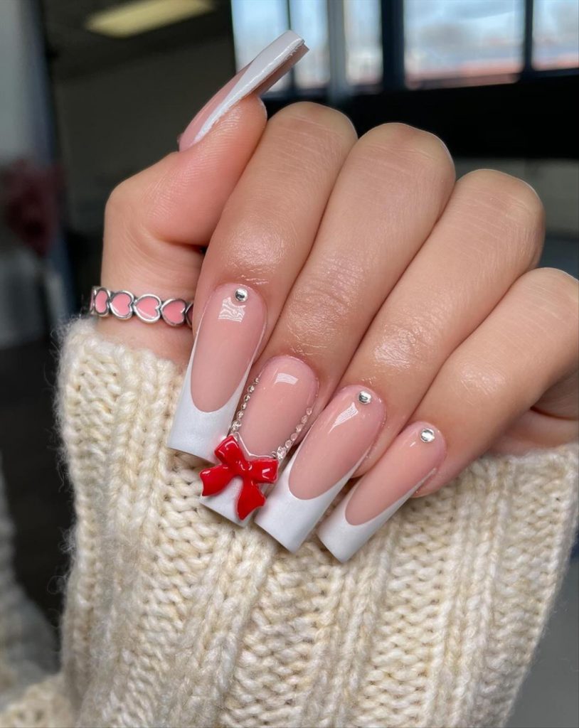 33 Dazzling Coffin Valentine s Nail Designs 2025 4