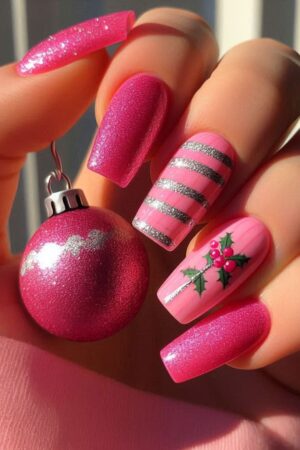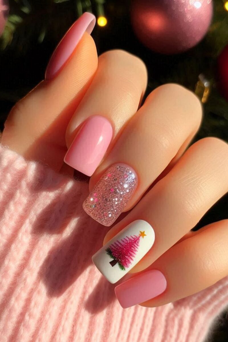 Pretty in Pink for Holidays 30 Festive Pink Christmas Nails Ideas 13